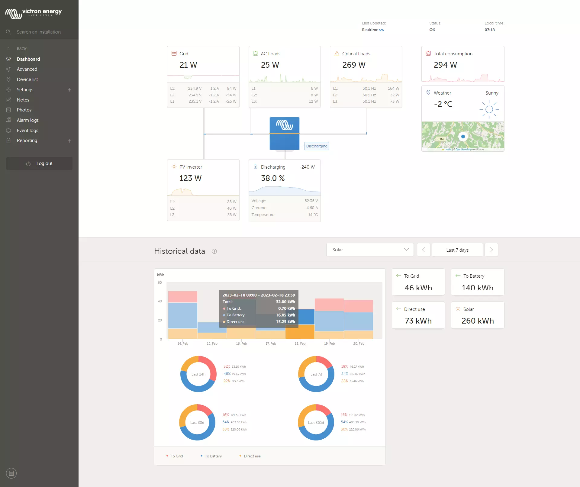 Victron System with 1P GP-SR1-RN150 Battery