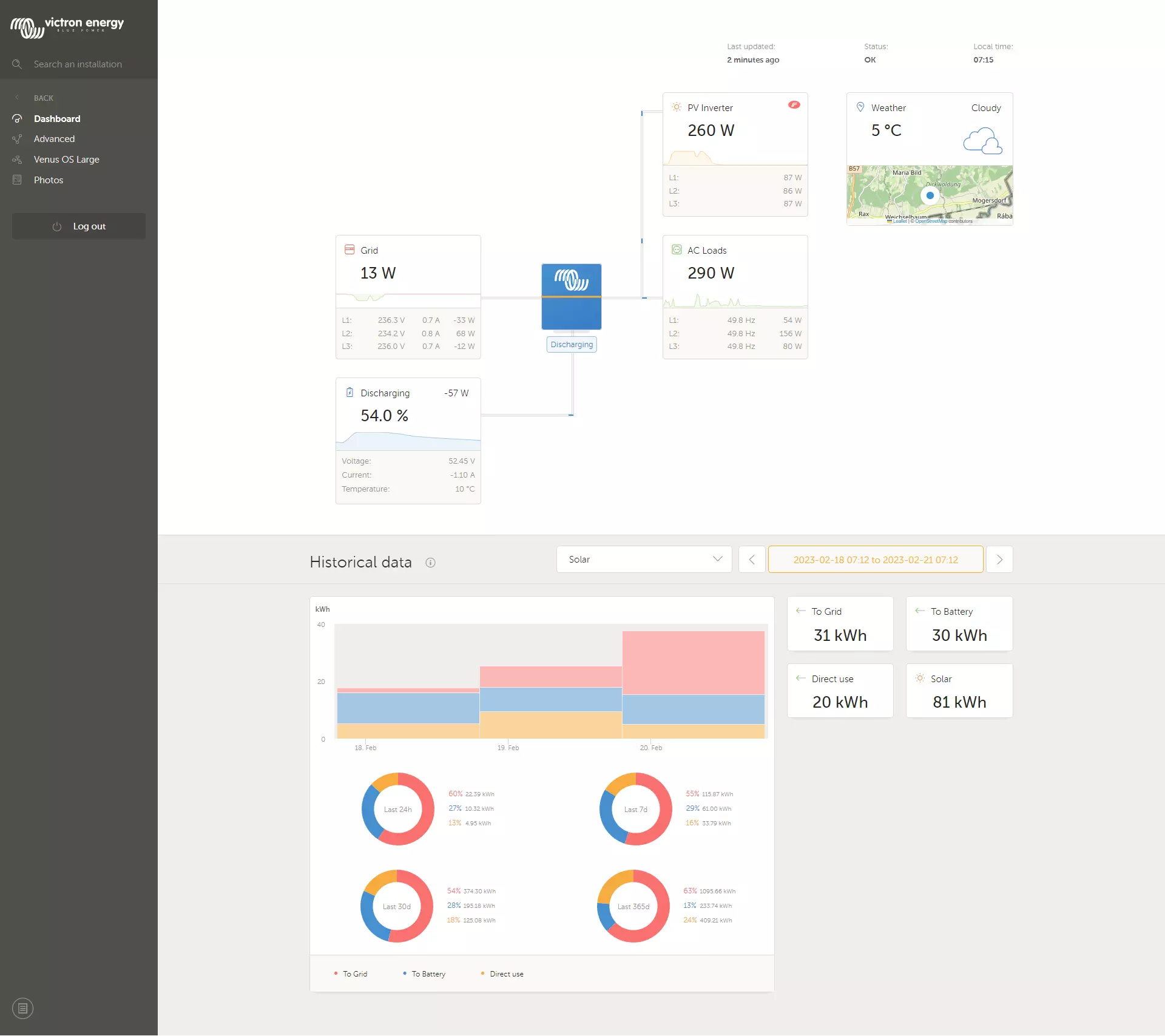 Victron System with 1P GP-SR1-PC200 Battery